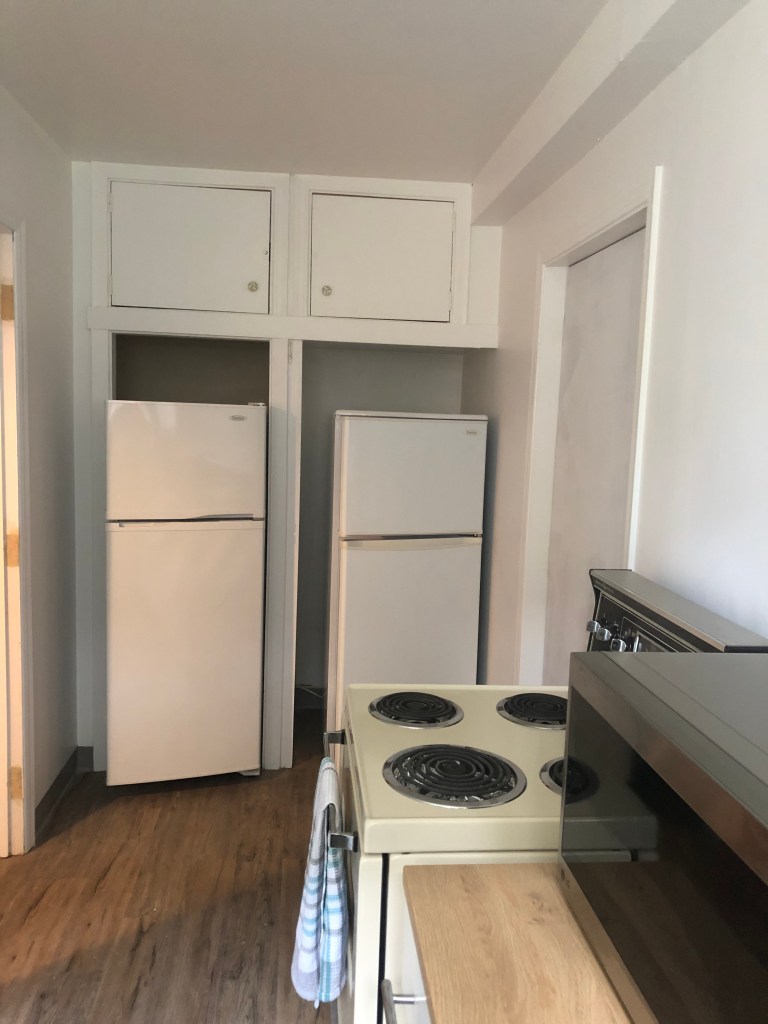 Une petite cuisinette a été aménagée, incluant 2 frigos, une cuisinière, un micro-onde, des chaudrons, de la vaisselle et des ustensiles.
