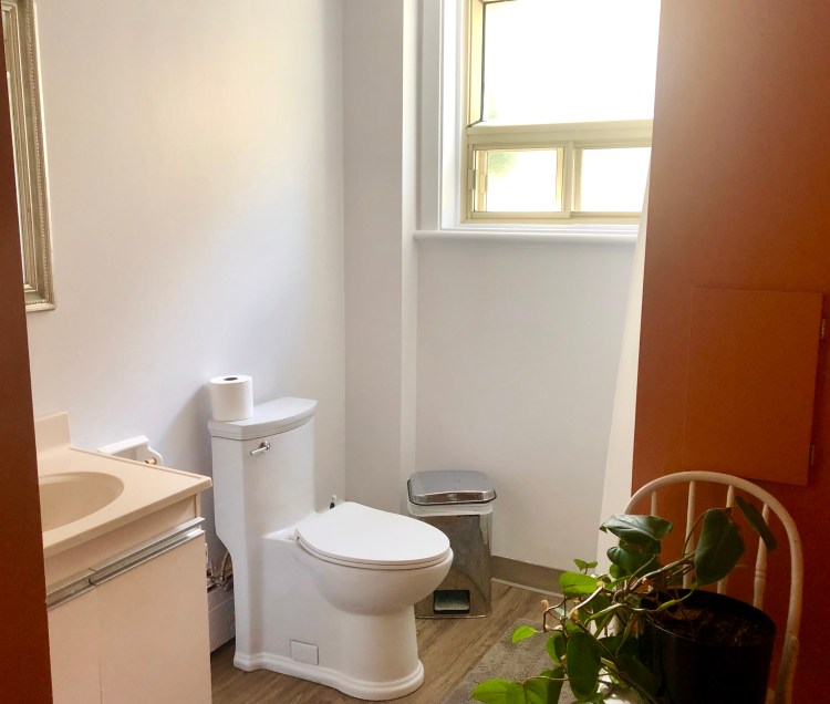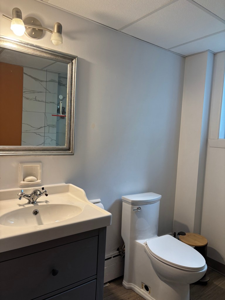 La salle de bain rénovée, inclut une douche qui est partagée tout au plus entre 4 locataires.
